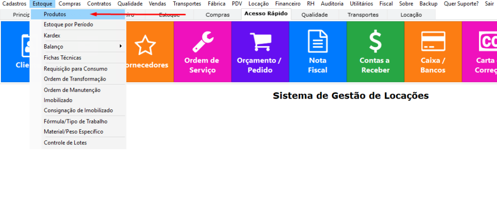pós cadastrar os tipos, ao acessar Estoque → Produtos