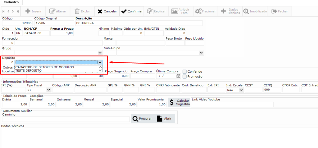 Assim, o produto ficará vinculado ao depósito selecionado, permitindo o controle individual por local de armazenamento.
