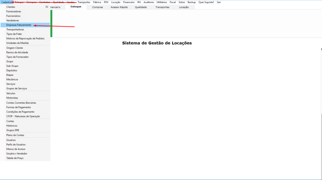 Conforme imagem acima, clique no menu “Cadastros” e depois na opção “Empresas Faturamento”, este informativo vai demonstrar como preencher os dados do contador para que ele possa baixar os XMLs de sua empresa na receita. Veja os passos a seguir:
