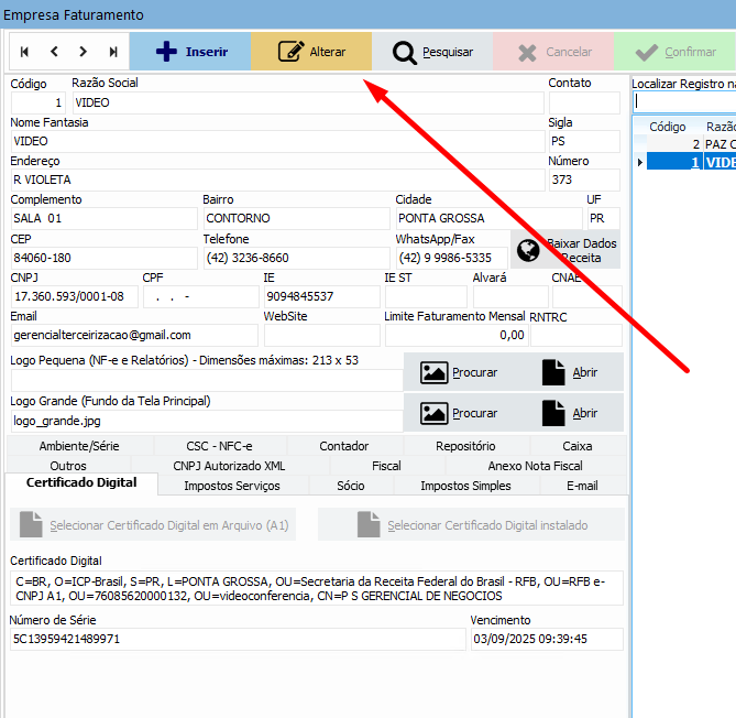 Primeiro passo, clique no botão Alterar: