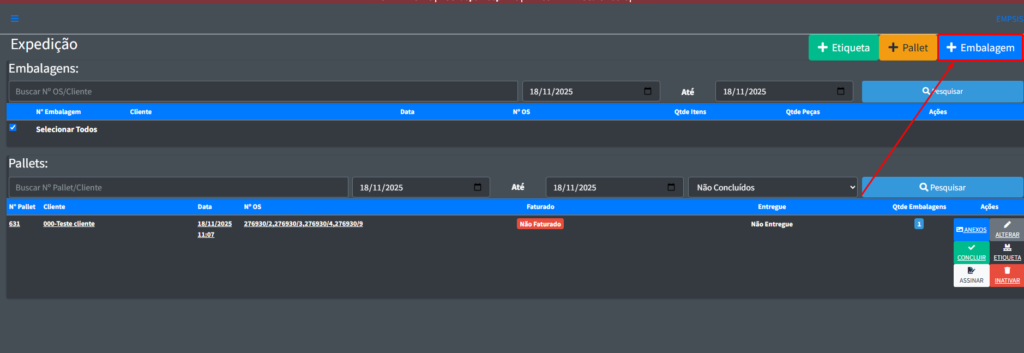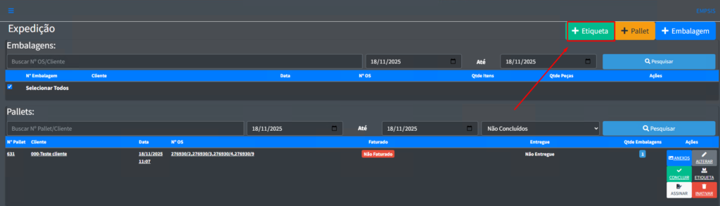 Este guia orienta o processo de geração de etiquetas, criação de volumes (embalagens) e finalização de pallets no módulo de Expedição.