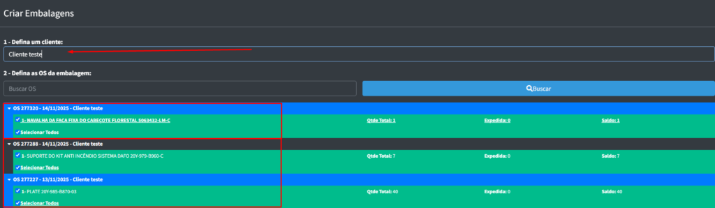 • Selecione as OS/Itens que farão parte desta caixa/volume e confirme a criação.
