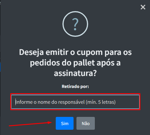 Ao concluir (tanto a embalagem quanto o pallet), será necessário identificar o conferente.