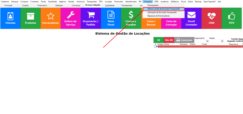 Quarto passo – Franquias → Alterar Limite de Exclusão Franqueado