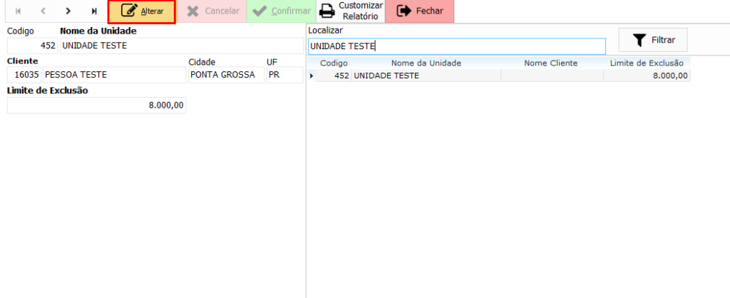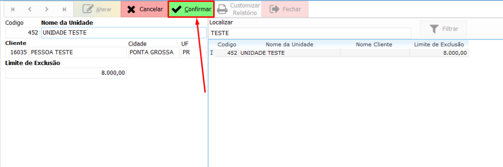 Este botão salva as alterações realizadas no cadastro da unidade franqueada.