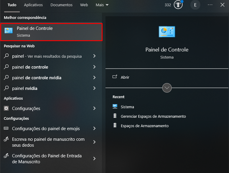 No menu iniciar, pesquise por Painel de Controle e clique na opção destacada.