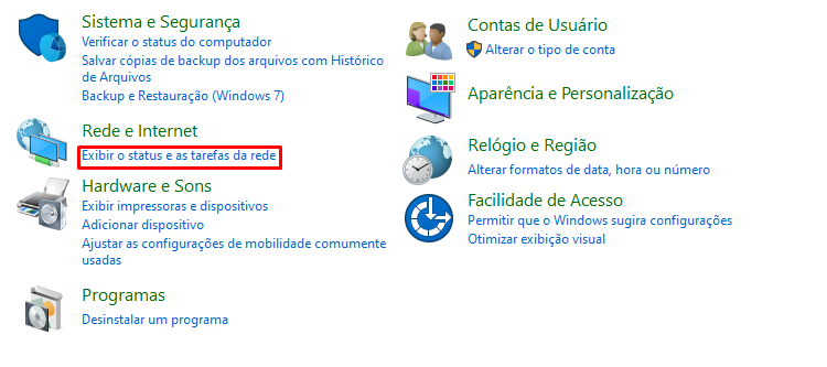Dentro do Painel de Controle, clique em Exibir o status e as tarefas da rede.