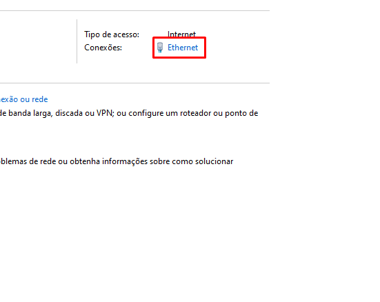 Na parte “Conexões”, clique sobre Ethernet (ou Wi-Fi, se estiver usando rede sem fio).