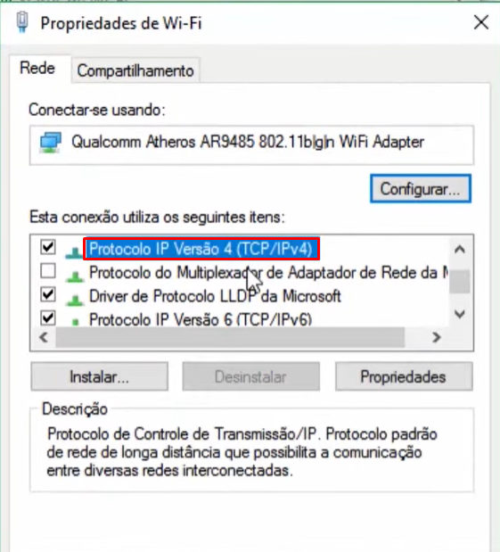 Quinto passo Selecione o Protocolo IP Versão 4 (TCP/IPv4)