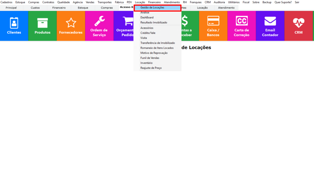 Primeiro passo – Na tela inicial Locação -> Gestão de locações