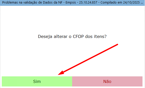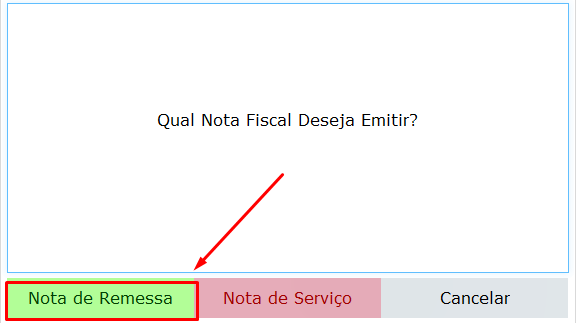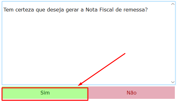 Em seguida, clique no botão Nota de Remessa e depois clique no botão Sim: