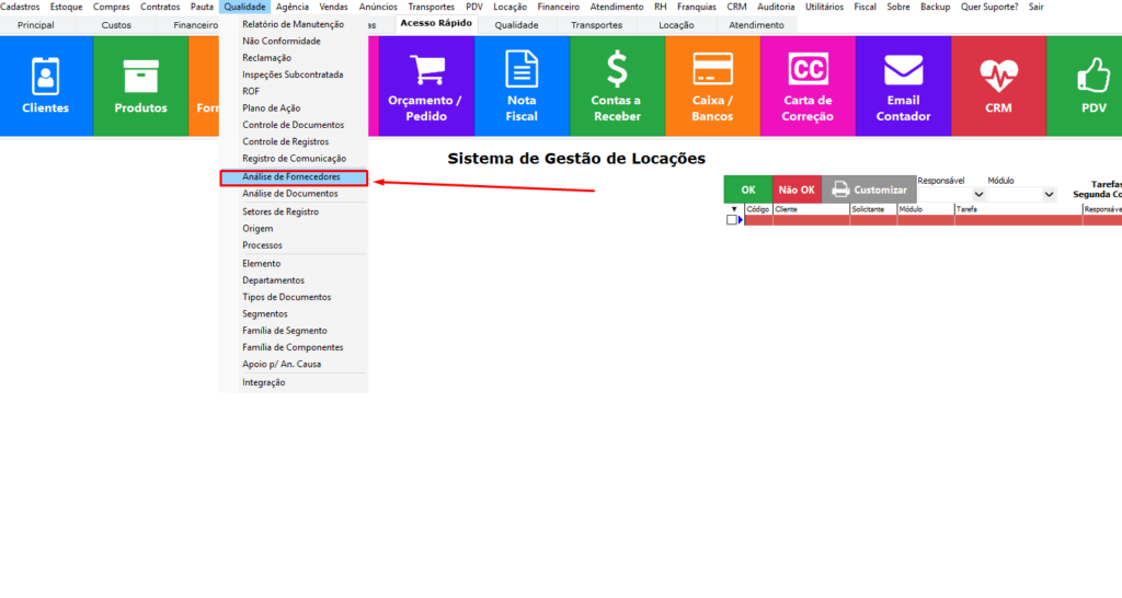 Primeiro passoQualidade → Análise de Fornecedores