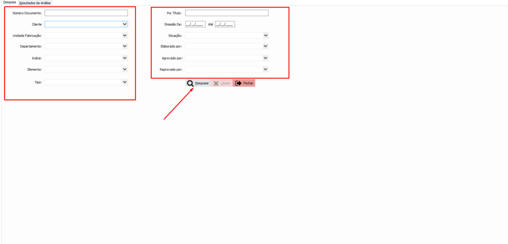Na aba Resultados da Análise, serão exibidos os documentos conforme critérios informados.