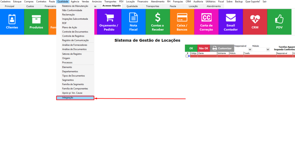 Registrar não conformidades, identificar causas raiz através da metodologia dos 5 Porquês e controlar integrações cadastradas no sistema.