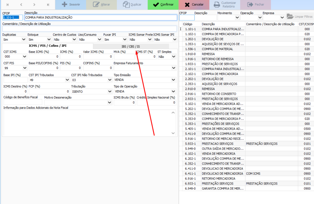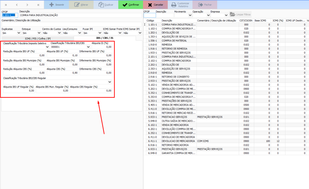 Quarto passo – Preencher IBS/CBS na regra fiscal do CFOP