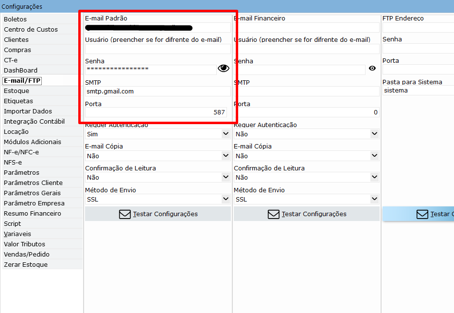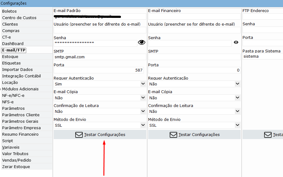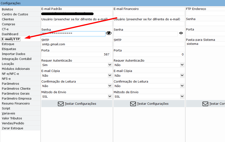 InformaƧƵes como SMTP e PORTA vocĆŖ consegue com o seu provedor de e-mail caso vocĆŖ nĆ£o saiba. E hotmail nĆ£o Ć© compatĆvel para a configuração no sistema.