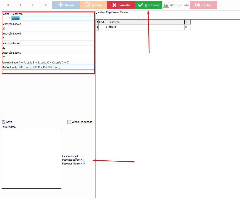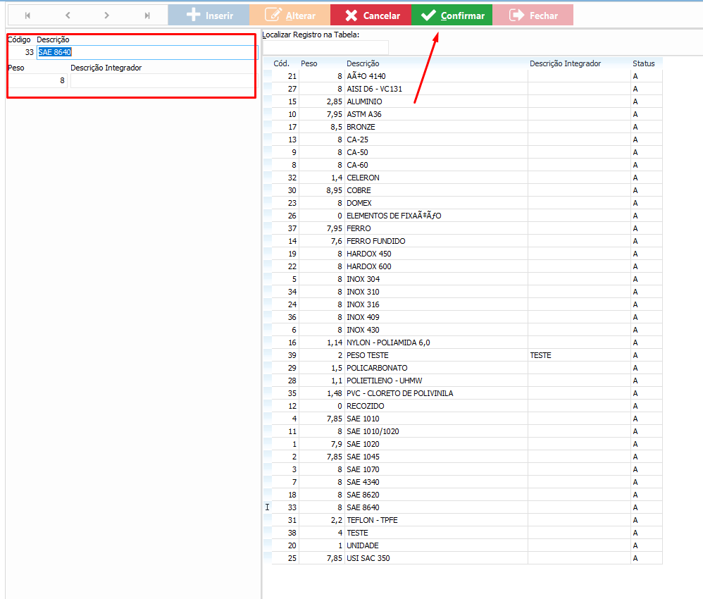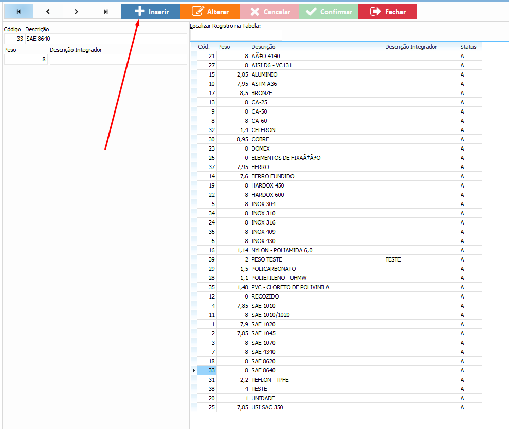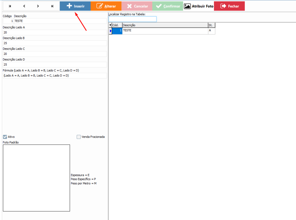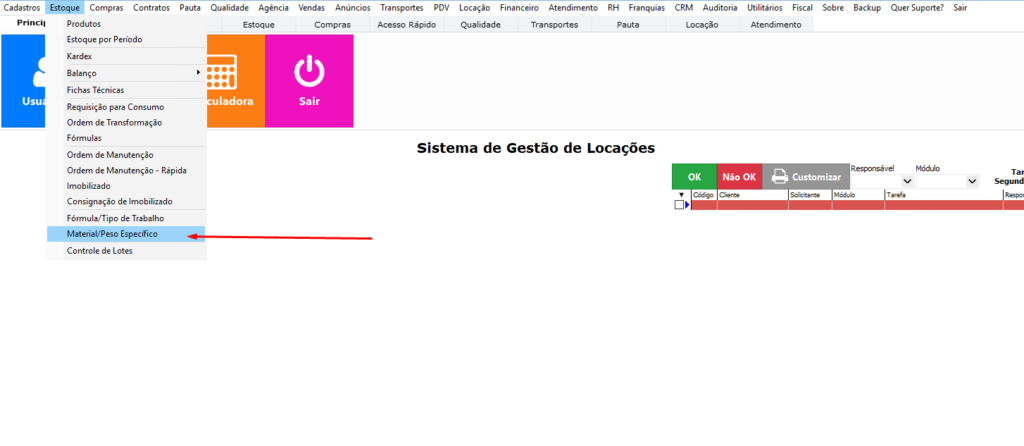 como cadastrar e gerenciar Fórmulas/Tipos de Trabalho e também como cadastrar Materiais com Peso Específico no sistema. Esses cadastros são utilizados para padronização de cálculos, controle técnico e integração com processos produtivos.