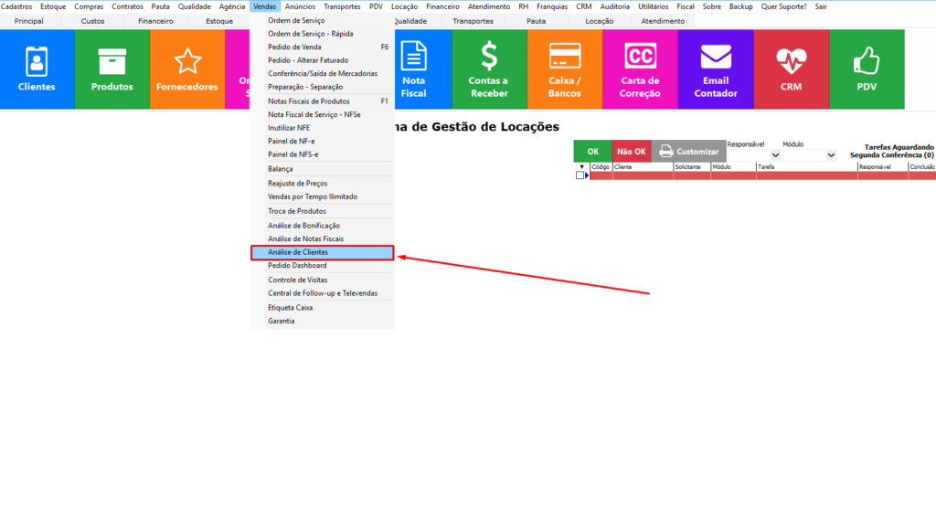 Primeiro passoClique em VendasClique em Análise de Clientes