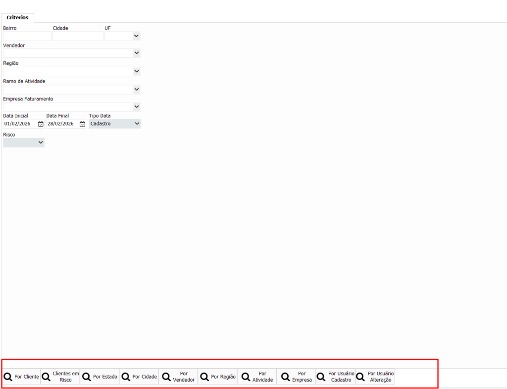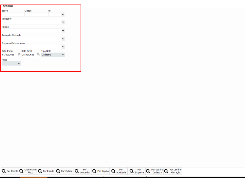 Na aba Critérios, preencha conforme necessidade: