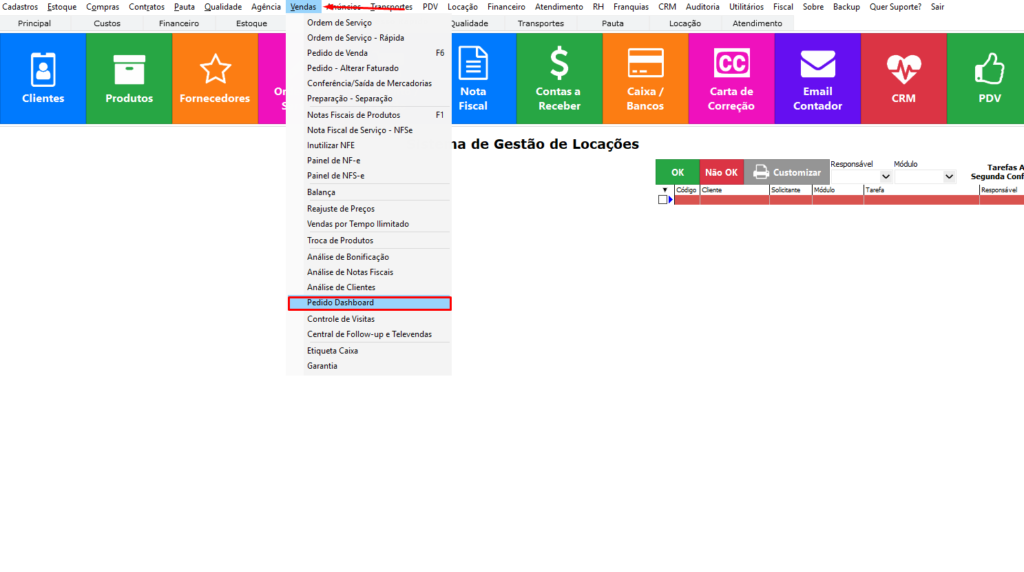 Quarto passo Vá em vendas. Então Pedido dashBoard